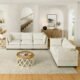 3-Piece Chenille Fabric Upholstered Living Room Furniture Set, Including 3-Seater Sofa AndV2 Loveseat Sofa With Seat And Back Cushion Beige White