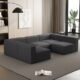 104.3270.86 Modular Sectional Sofa Sleeper Couch, Sectional Sofa With Chaise And Ottoman, Convertible U Shaped Modular Sofa Set. Compressed Sponge, Dark Grey