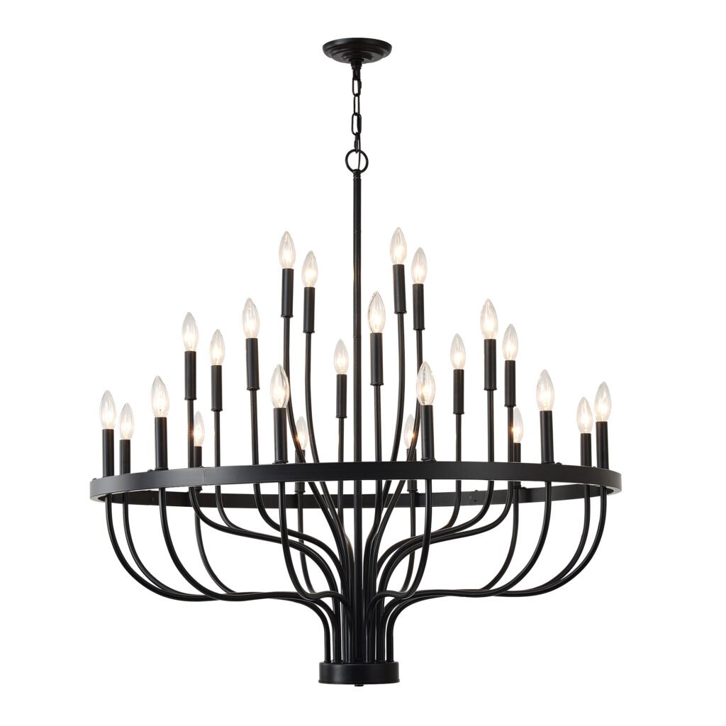 24-Light Black Chandelier Industrial Iron Candle Chandelier Modern Suspended Farmhouse Chandeliers Pendant Light Fixtures For Dining Room Bedroom Living Room Kitchen Island Foyer E12 Bulb