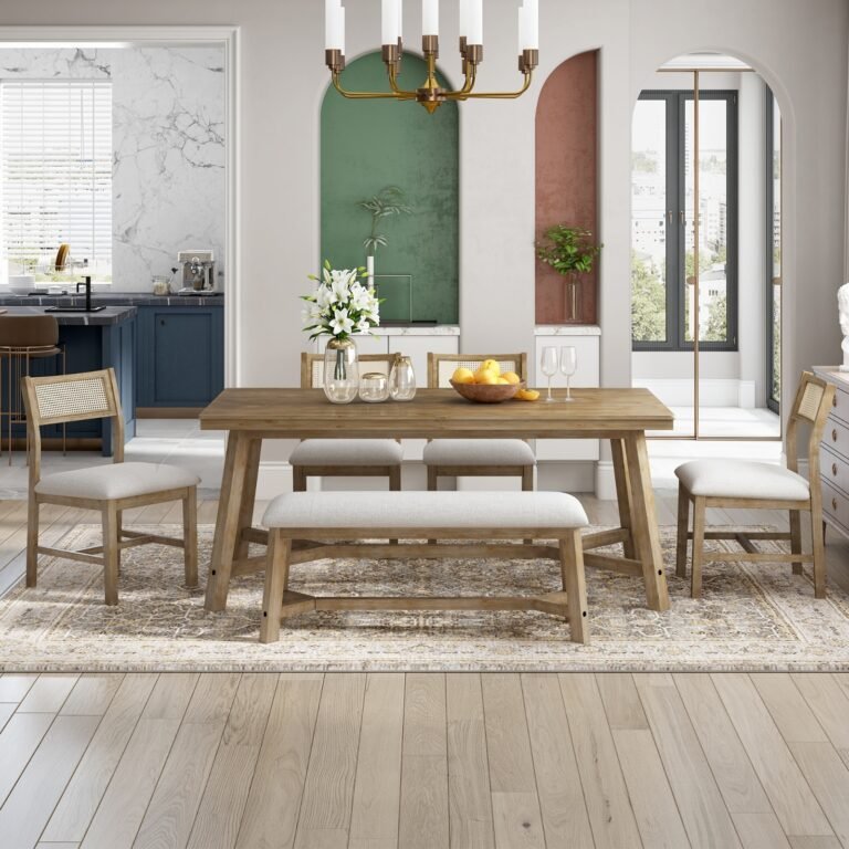 TOPMAX 6-Piece Wood Half Round Dining Table Set With Long Bench & 4 Chairs