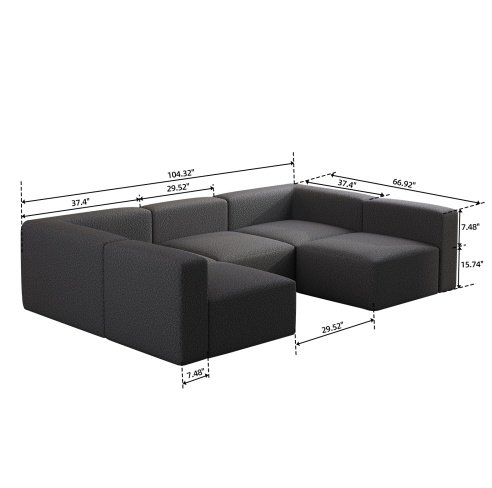 Product Name:104.32*70.86 Modular Sectional Sofa Sleeper Couch, Sectional Sofa with Chaise and Ottoman, Convertible U Shaped Modular Sofa Set. Compressed sponge, Dark Grey (Combo 3A+2B)