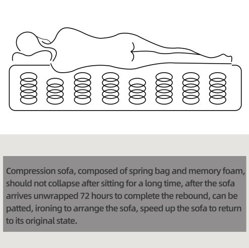 • 【Compression sofa】 No need to install, eliminate the cumbersome process of installation, the sofa contains memory foam and spring bag, the spring bag plays a role in supporting and sitting for a long time. The memory foam sofa is compressed in the express package, and after the package is unpacked, the sofa will rebound within 72 hours, and the rebound speed can be accelerated by patting and finishing.