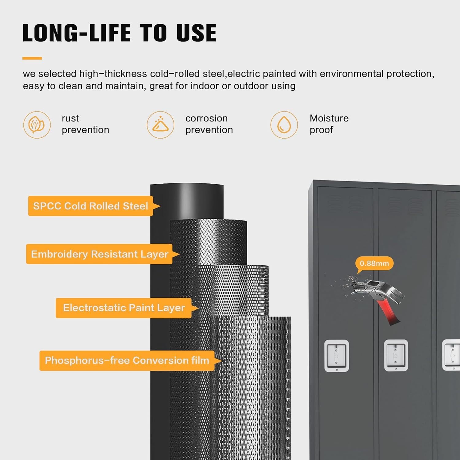 • 【High Security】Each door of the metal storage lockers for employee adopts embedded door locks, which are convenient for closing and opening. If you want to store valuable items, you can also buy your lock.