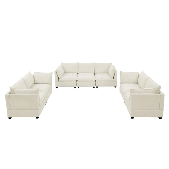 Product Name: 3-Piece Chenille Fabric Upholstered Living Room Furniture Set, Including 3-Seater Sofa andV2 Loveseat Sofa with Seat and Back Cushion(Beige White)
