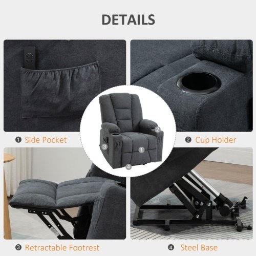 Product Name:HOMCOM Electric Riser Recliner Armchair, Oversized Chair with Cup Holder & Side Pockets for Elderly in Living Room, Charcoal Grey