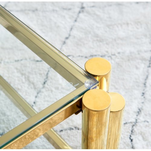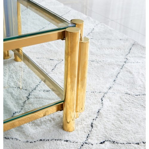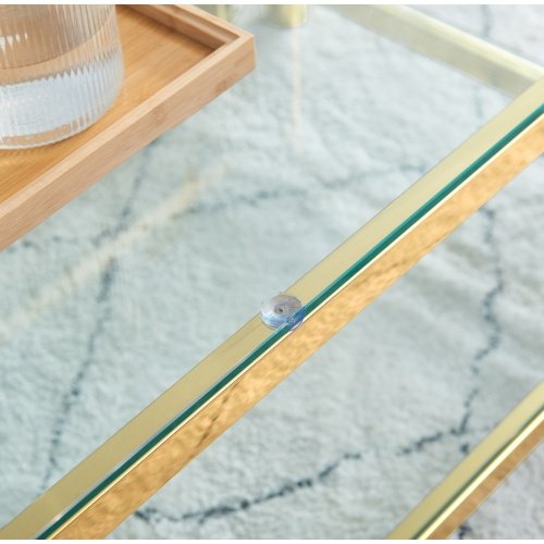 Product Name:Modern Stainless Steel Coffee Table Set (Set of 2), Double-Layer Clear Tempered Glass Table Top, Coffee Table & End Side Table 2-Pieces Sets for Living Room Home Office, Gold