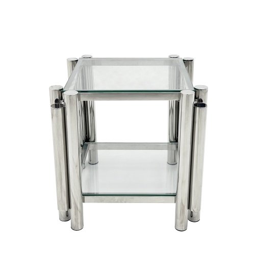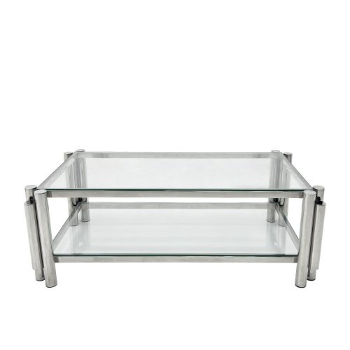 Product Name:Modern Stainless Steel Coffee Table Set (Set of 3), Double-Layer Clear Tempered Glass Table Top, Coffee Table & Two End Side Table 3-Pieces Sets for Living Room Home Office, Silver