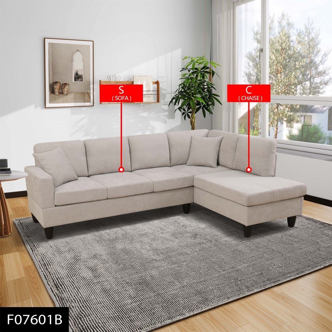 Off-White Short Fur Fluffy Fabric 2-Piece Left Side L-Shaped Living Room Sofa Set