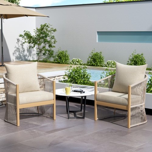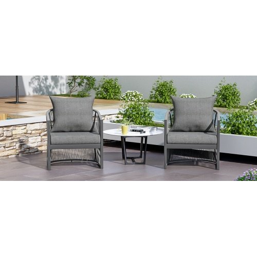 Product Name:[Set of 2] Modern Gray Curved Aluminum Lounge Chair with Stylish Rope-Weave Design and Cushioned Comfort, Perfect for Outdoor Living