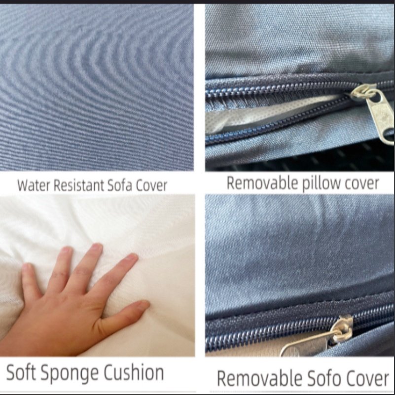 • 7-piece set of black rattan with blue cloth cover:PE+metal frame, galvanized pipe 15*15*0.7MM, black rattan 9*0.95, cushion 10CM250D, fabric 202g polyester waterproof cloth, back padding 1.1KG, 5MM tempered glass
