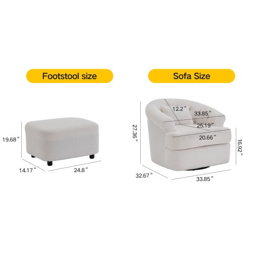 Product Name:Swivel Chair with Ottoman, Modern Luxury Velvet Swivel Accent Chair, Comfy Round Armchair, Single Sofa Armchair with Lounge Seat for Bedroom/Office/Reading Spaces,Set of 1,Off-white