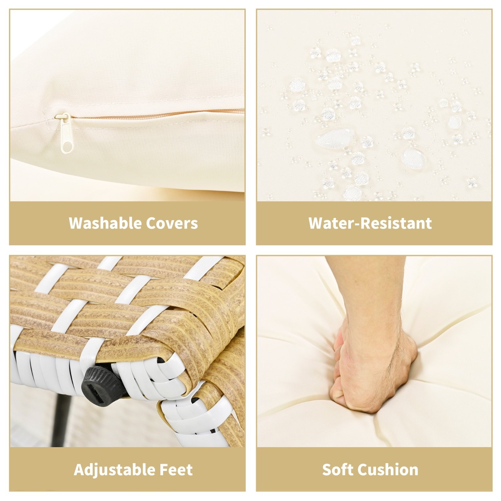 • [All-Weather Elegance & Durability] Experience year-round outdoor luxury with our beautifully crafted rattan daybed, designed to withstand all weather conditions. Made from high-quality PE rattan woven over a robust metal frame, this daybed combines elegance with resilience. The two-tone weave adds a contemporary flair, making it a stylish addition to any outdoor space. Its durability ensures that your investment remains as stunning as the day you bought it, regardless of the weather.