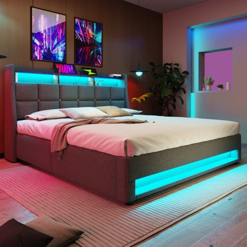 • LED LIGHTING:The LED lighting at the head and foot of the bed adds a modern touch to your bedroom, and the remote control allows you to change the different colors and brightness for a pleasant night’s sleep.
